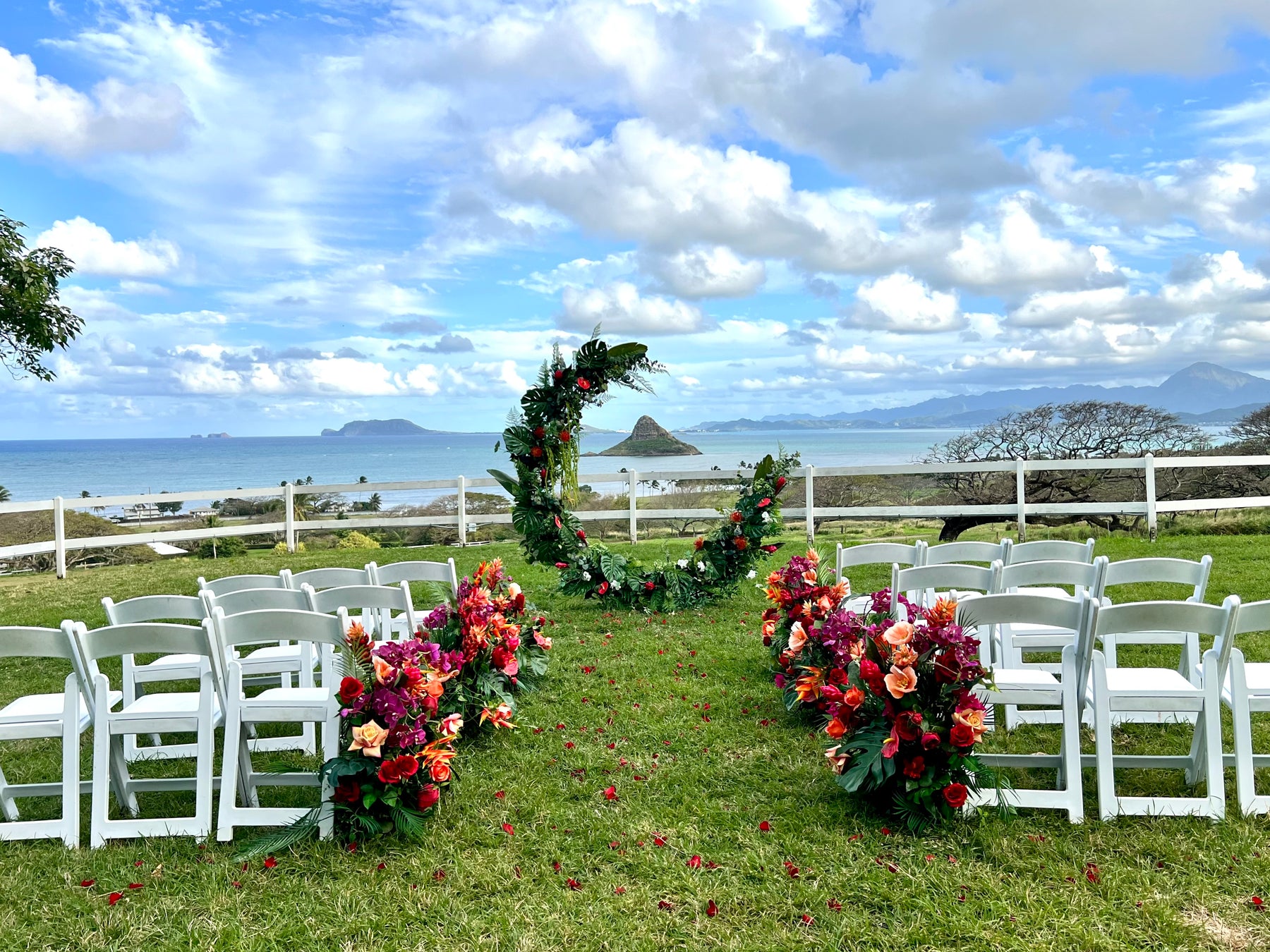 We offer delivery from Haleiwa to Kaneohe, and approve locations outside of that area on a case by case basis. Contact us to find out if we can bring this beautiful piece to your venue.